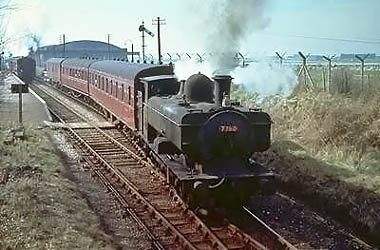 hauled by 74xx 0-6-0PT No. 7412, which can just be seen departing in the background. A similar scene to the picture above. Prominent in the background is one of the original