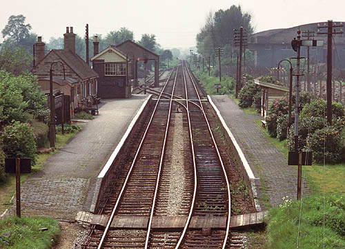 stations. The view above shows the signal box and station building from the approach road side on 5 March 1978. Although the bridge seen in the background still survives, an industrial estate now covers the entire